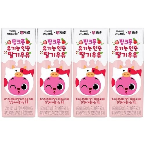 피코크 핑크퐁 유기농인증 딸기 우유 125mL X 4
