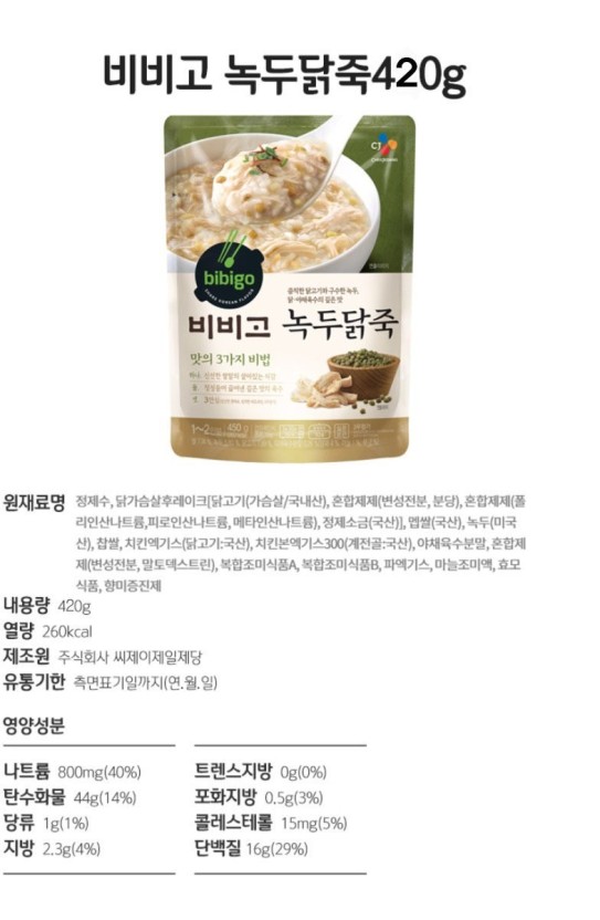 CJ 비비고 녹두닭죽 420g